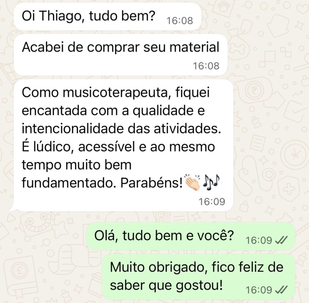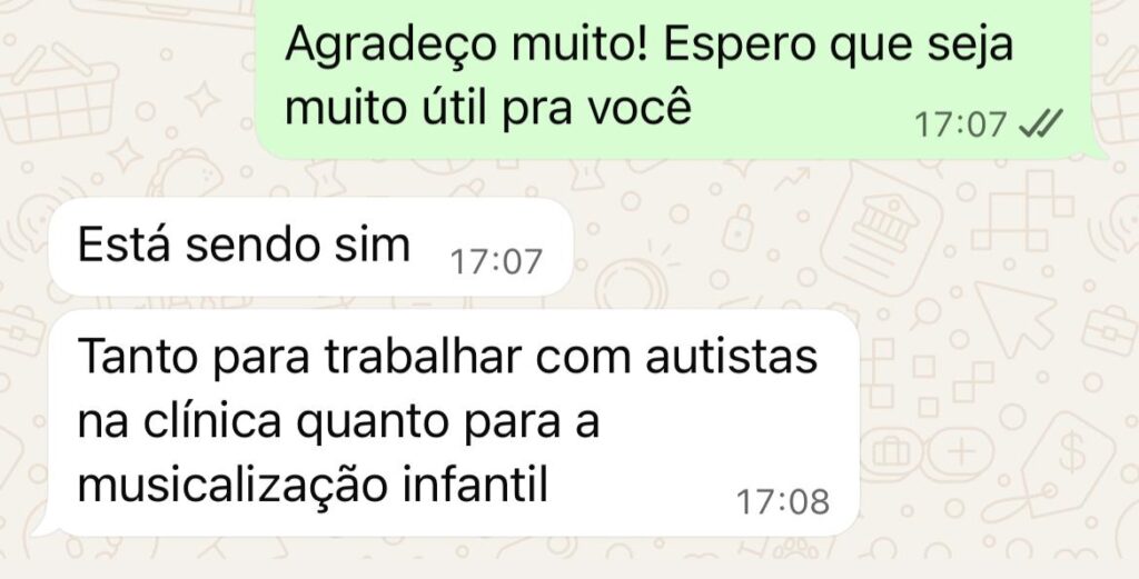Ao longo da minha trajetória, desenvolvi recursos de musicalização que ajudam professores, musicoterapeutas e pais a engajar crianças de forma natural, lúdica e significativa, mesmo sem formação musical.